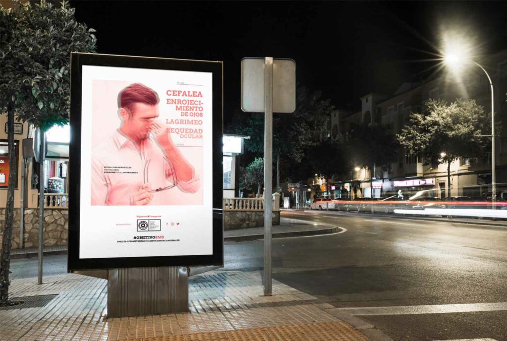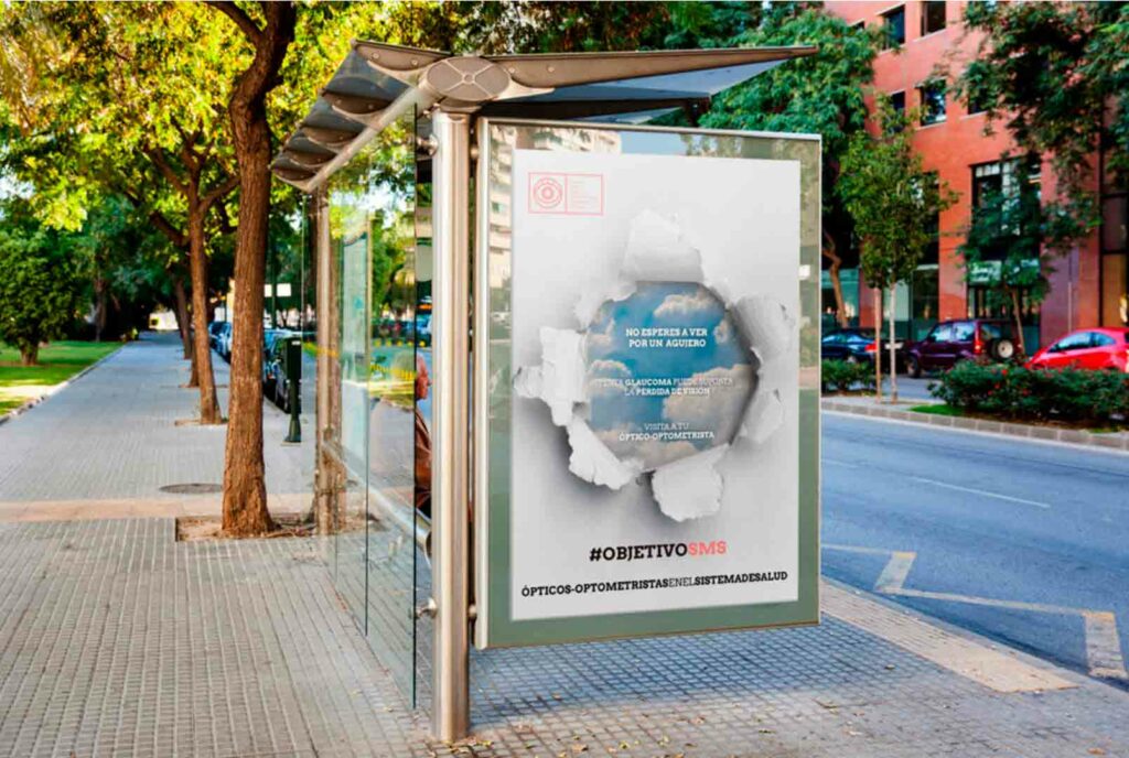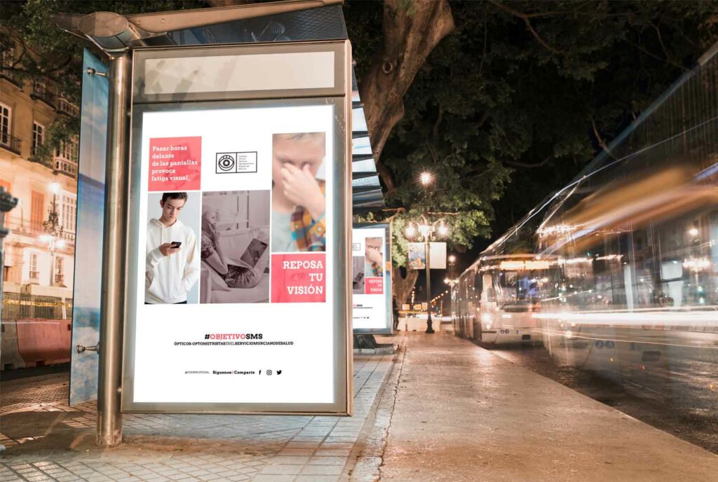 La Campaña Objetivo SMS realizada para el Colegio Oficial de Ópticos-Optometristas de la Región de Murcia tuvo varias fases antes de salir a la luz. La estrategia que siguió fue  la activación y fidelización de los colegiados mediante el regalo de la pulsera #ObjetivoSMS y varias carteleras por la ciudad para invitar a la gente a seguir las redes sociales, que se convertirían en el eje principal de la campaña.